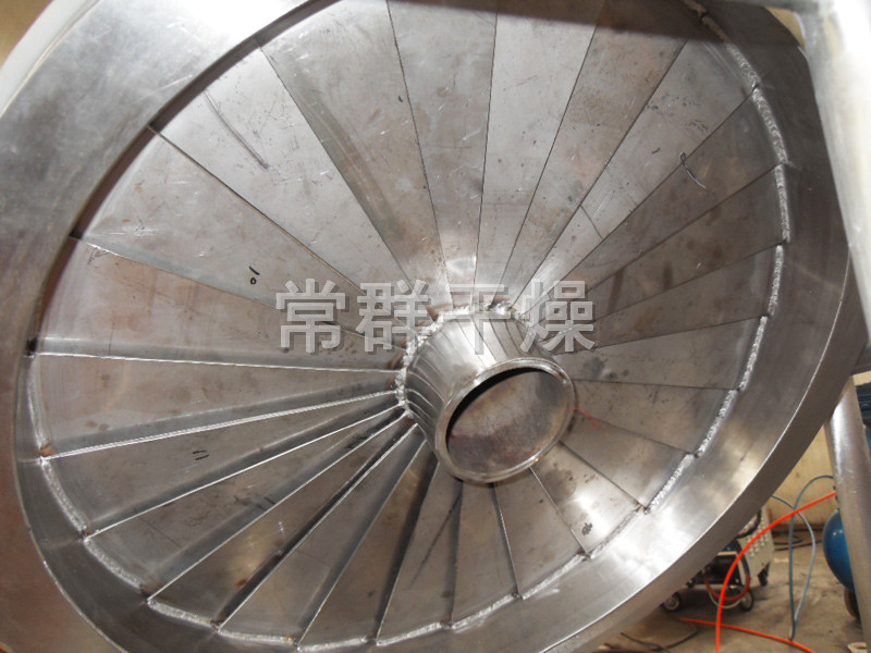 經凈化、加熱后的空氣由環隙進入容器內,容器內的物料呈高速沸騰狀,由于分布板的旋轉,物料受到自身重力、空氣浮力、圓周離心力、摩擦力作用,呈圓周環繞狀運轉。